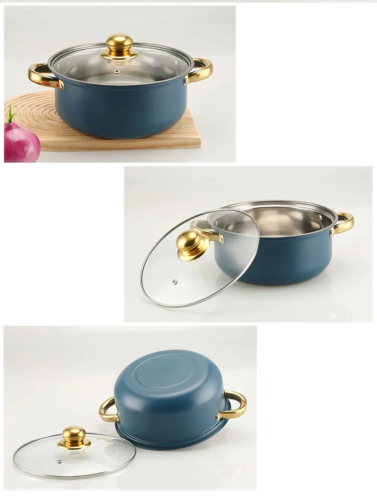 10 wholesale kitchenware stock pot stainless steel pink cooking milk soup pot cookware set